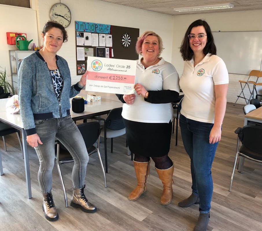 De opbrengst van het knotten werd door de Tafelronde 140 nog eens extra aangevuld. Hierdoor hebben de ladies € 1.250,= kunnen overhandigen aan “Inloop De Spil”. Deze wijkgerichte zorg van Yulius in Papendrecht opent 2 maal per week haar deuren voor iedereen, die behoefte heeft aan contact en samenzijn door middel van laagdrempelige activiteiten. “Inloop De Spil” zal met dit bedrag een mooie dag uit met haar bezoekers gaan organiseren.