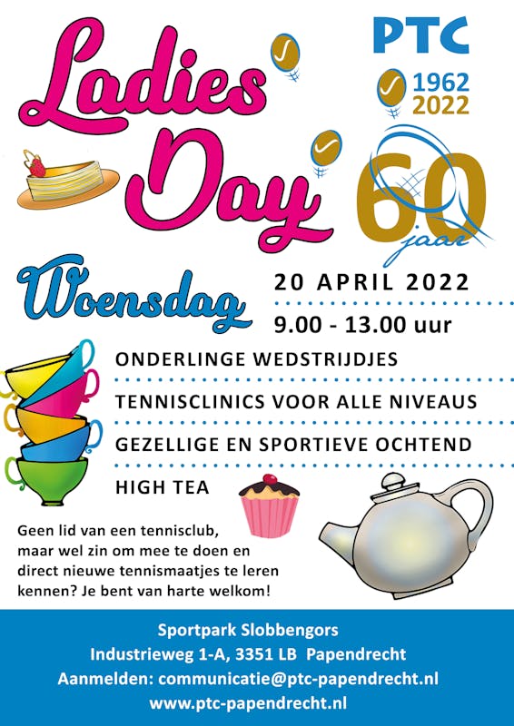 Woensdag 20 april aanstaande van 9.00-13.00 uur organiseert PTC een Ladiesday!