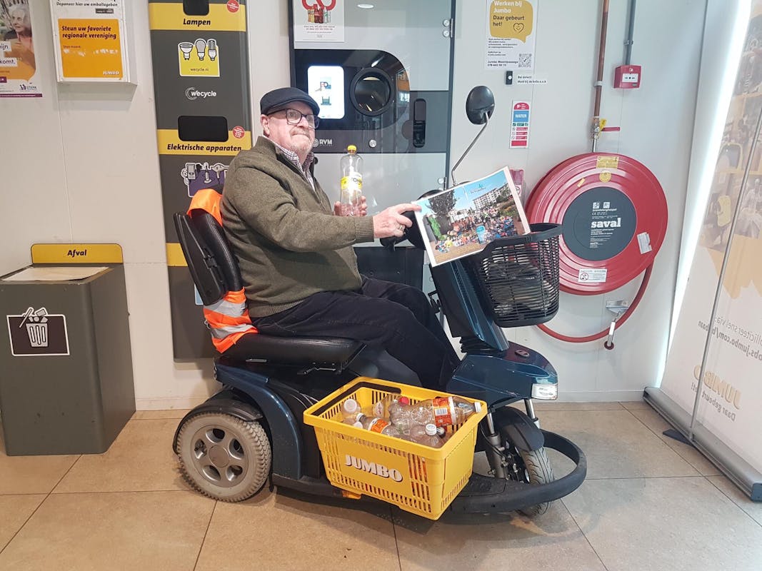 Wij zijn het goede doel van de maand april, dus lever je lege flessen in bij Jumbo Meentpassage en doe de bon in de brievenbus voor de scootjes!