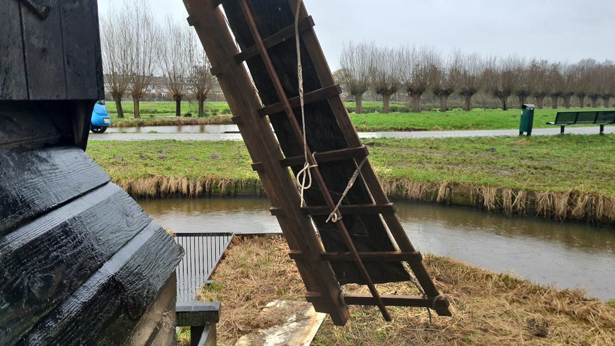 Restauratie is van start gegaan. De roeden en as worden vervangen. De makelaar op de kap wordt vervangen en de bovenkap wordt hersteld.