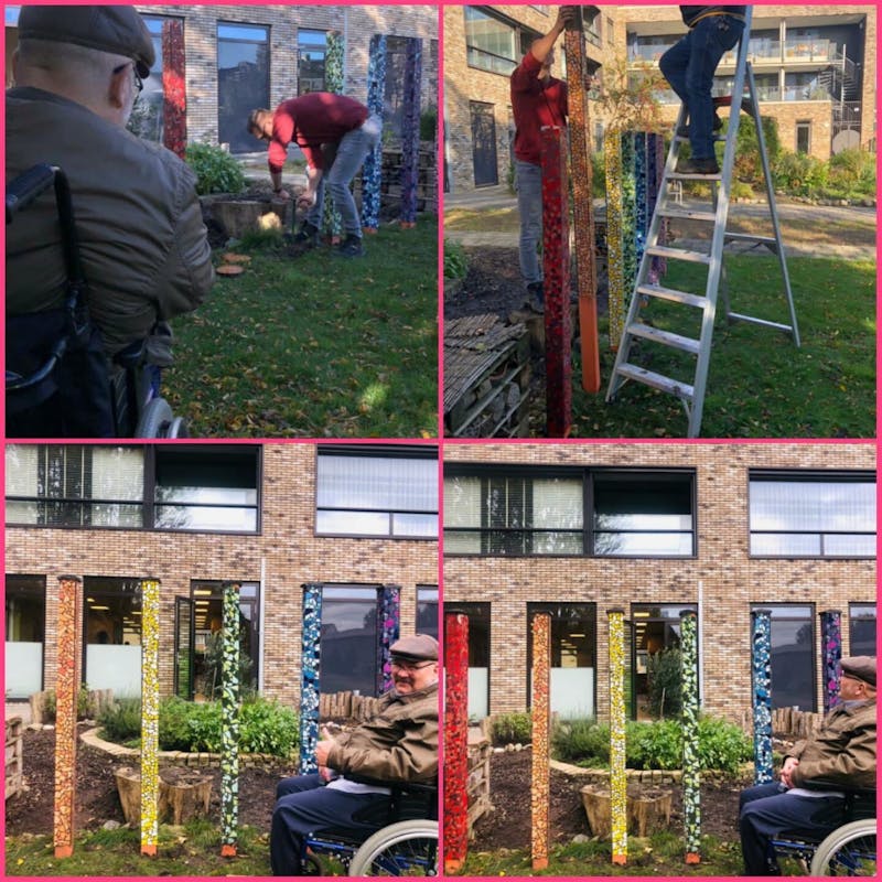 Na 1,5 keihard werken is zijn project eindelijk af 🌈 elke paal is met de hand gemozaiekt