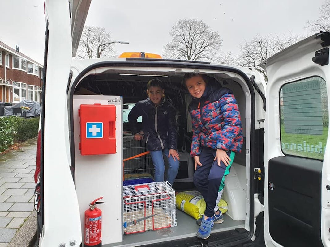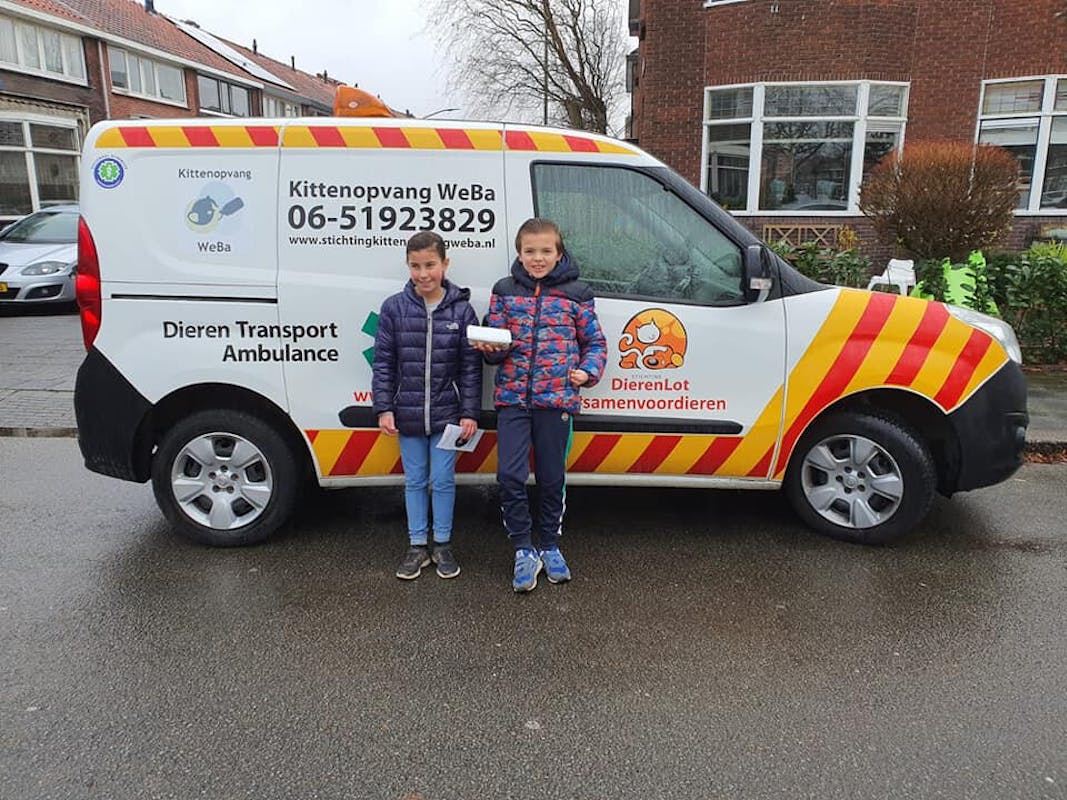 We plaatste onlangs een oproep, of mensen wilde mee sparen voor een mini couveuse voor in de ambulance. Nick van 9 jaar las dit bericht en wilde graag geld ophalen voor dit goede doel. Hij bedacht een kaartentruc, ging er samen met zijn vriedinnetje Lara mee bij de supermarkt staan en vroegen hiervoor geld aan de voorbijgangers. Al gauw hadden deze entertainers €50,00 opgehaald. Zijn moeder had vooraf beloofd het geld te verdubbelen. Zo kwam het dat WeBa werd uitgenodigd om een cheque van maar liefst €100,00 in ontvangst te nemen. We kwamen met de ambulance waarin de kinderen een kijkje mochten nemen. Nick en Lara jullie zijn echte dierenvrienden. Mede door jullie inspanning hebben we nu een couveuse voor in de ambulance. Super bedankt ook namens alle kittens!