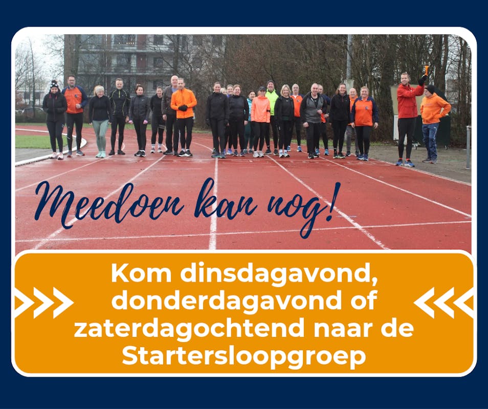 Op zaterdag 6 september 2025 starten we om 9.30 uur met een informatiebijeenkomst in de kantine van AV Passaat. Aansluitend vindt de eerste training plaats. De trainingstijden van de startersloopgroep zijn zaterdag om 9.30 uur en op dinsdag en donderdag om 20.00 uur. Je kunt de eerste 2 weken nog instromen, je mag gewoon oo tijd komen en meteen meedoen.