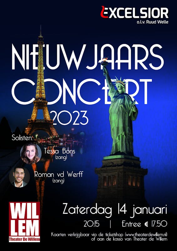 Het nieuwjaarsconcert is al jaren een traditie en is de feestelijke, muzikale en professionele opening van het nieuwe jaar door het orkest van Excelsior. Het concert vindt plaats in Theater de Willem (Papendrecht) op 14 januari. Aanvang is 20:15 uur. Kaarten zijn te koop via www.theaterdewillem.nl, of aan de kassa van Theater de Willem.