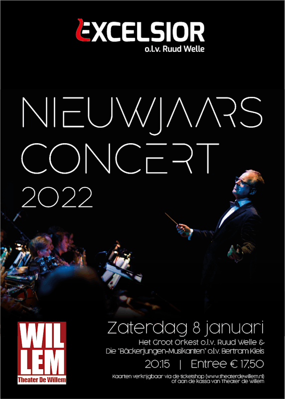 Het nieuwjaarsconcert is al jaren een begrip en is de feestelijke, muzikale en professionele opening van het nieuwe jaar door Het Groot Orkest van Excelsior. De avond wordt geleid door dirigent Ruud Welle en vindt plaats in Theater de Willem (Papendrecht) op 11 januari. Aanvang is 20:15 uur. Kaarten zijn te koop via https://excelsiorpapendrecht.nl/agenda/nieuwjaarsconcert-2022, of aan de kassa van Theater de Willem.