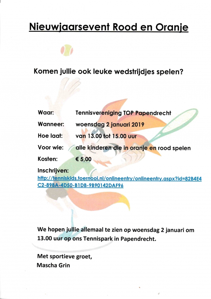 Komen jullie ook leuke wedstrijdjes spelen? Woensdag 2 januari bij Tennisvereniging TOP Papendrecht van 13.00 tot 15.00 uur.