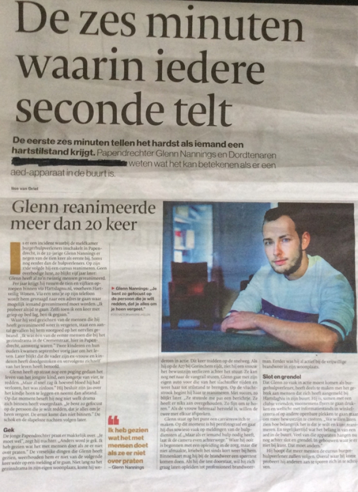 Juist de eerste 6 minuten zijn het belangrijkst en ondanks dat de ambulance en politie vaak snel aanwezig zijn kan het ook voorkomen dat u reanimatie op uw buurman/vrouw toe moet passen of zelfs uw huisgenoot. Fijn te weten dat je dan snel kan handelen. Overigens heeft de politie hier in Papendrecht ook een AED tot z’n beschikking in de auto dus dat is fijn te weten. En ook u kunt burgerhulpverlener worden bij Hartslagnu.
