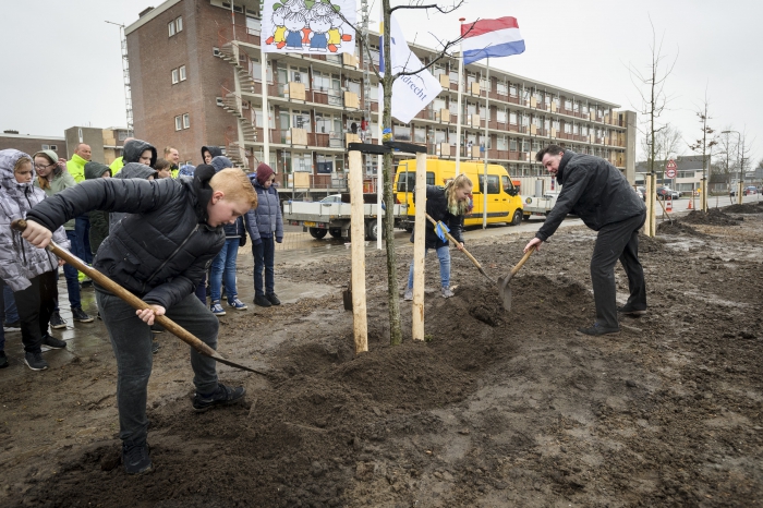Wethouder Arno Janssen plantte de eerste boom samen met de leerlingen. Daarna werden er 21 moeraseiken geplant langs de Vondellaan.