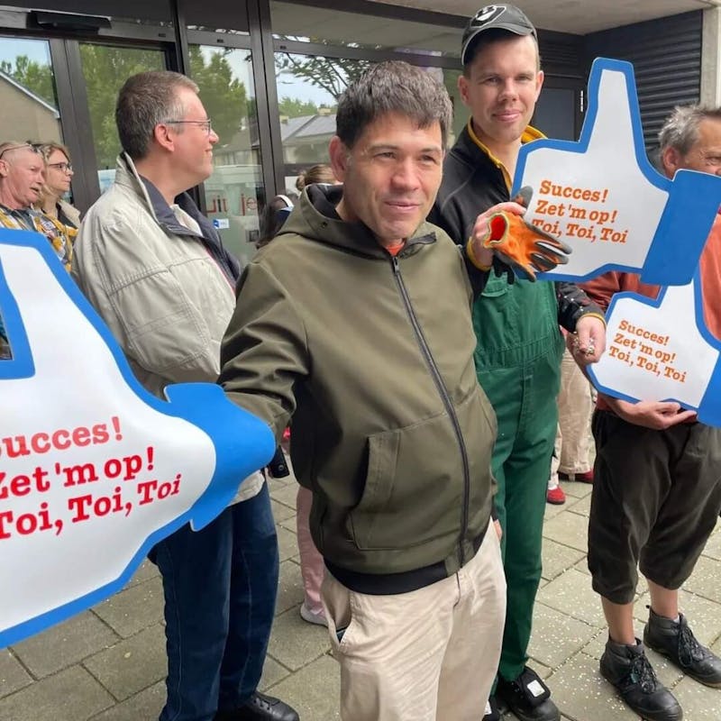 En op weg zijn ze, de kanjers van het Gemiva-Roparunteam 180! Vanuit Papendrecht op weg naar Parijs, feestelijk uitgezwaaid door collega’s en cliënten. Met als extra boost vlak voor vertrek de onthulling van het bedrag dat de acties van onze locaties in de Drechtsteden en op de Zuid-Hollandse Eilanden opbrachten. Ruim 2700 euro extra op de teller. En zo gaat ons team met een tussenstand van 17.545 euro richting Parijs. Dat bedrag kan nog altijd groeien, want geven kan nog steeds via https://www.roparun.nl/teams/gemiva/donate