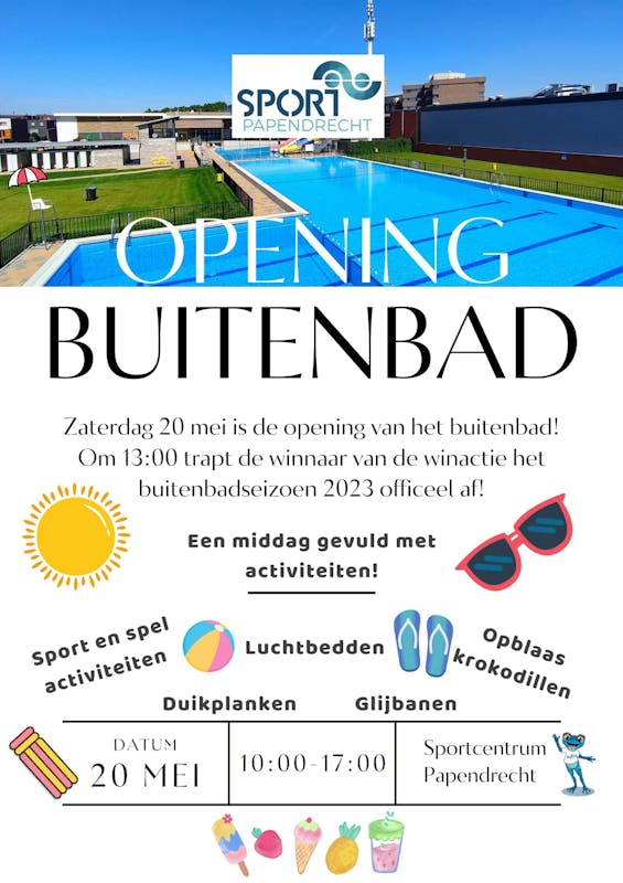Neem allemaal je opblaas krokodillen, luchtbedden en strandballen mee. We gaan het buitenbad met zijn allen feestelijk openen
