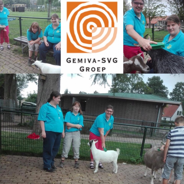 De groep cliënten die woensdag werken bij Kinderboerderij De Papenhoeve hebben geholpen bij het knuffeluurtje. Tijdens het pauzemoment hebben ze heerlijk buiten gezeten.