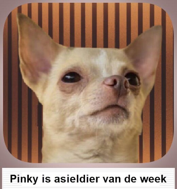 Pinky is een vrolijke, oranje clown uit de "Kijk Het Klikt"-test: grappig, gevoelig en superlief! Dit schattige hondje kruipt graag op schoot zodra hij zich veilig voelt. In nieuwe situaties heeft hij even tijd nodig, maar met geduld bloeit hij op. Aan de lijn blaft hij soms naar honden en mensen door onzekerheid, maar los is hij nieuwsgierig en sociaal. Laat Pinky op zijn pootjes staan, Help hem zelfvertrouwen opbouwen en zie hem stralen! Meer :>>>>>