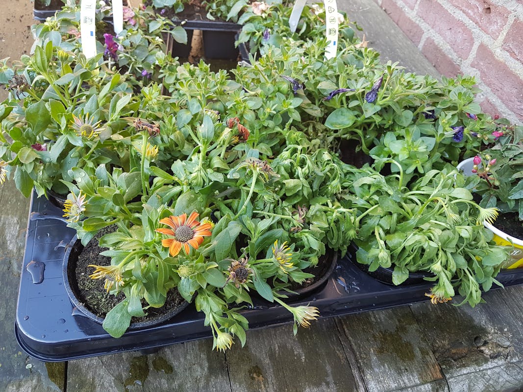 vrolijk bloeiende plantjes. Ze hebben wel aandacht en water nodig. Haal oude bloemetjes steeds weg - Spaanse margriet