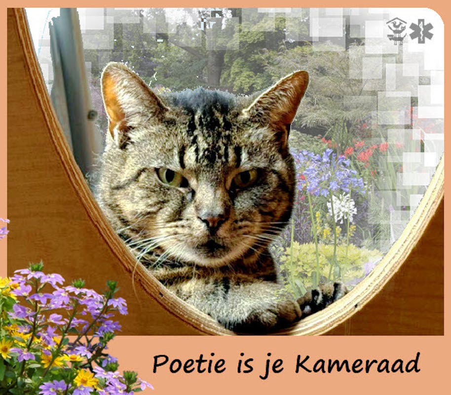 Poetie zoekt een thuis. Ze is nieuwsgierig en doet graag haar eigen ding. Ze houdt veel van mensen en volgt je overal naar toe maar ze ligt niet graag op schoot, naast je op de bank vindt ze wel erg gezellig. Optillen vindt ze niet erg leuk maar laat ze wel toe. >>>>