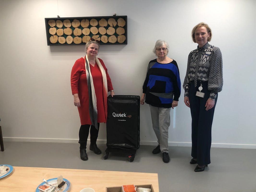 Dinsdag 1 november heeft De Wieken niet 1 apparaat, maar zelfs 2 apparaten van de QwiekUp geschonken gekregen van Ellen en Erik Veth. Locatieleider Alyda en Nel voorzitter van het cliënten overleg namen deze in ontvangst. We zijn hier enorm blij mee! De QwiekUp kan ingezet worden voor verschillende doelen, zoals zorg, reminiscentie en als welzijnsmoment.