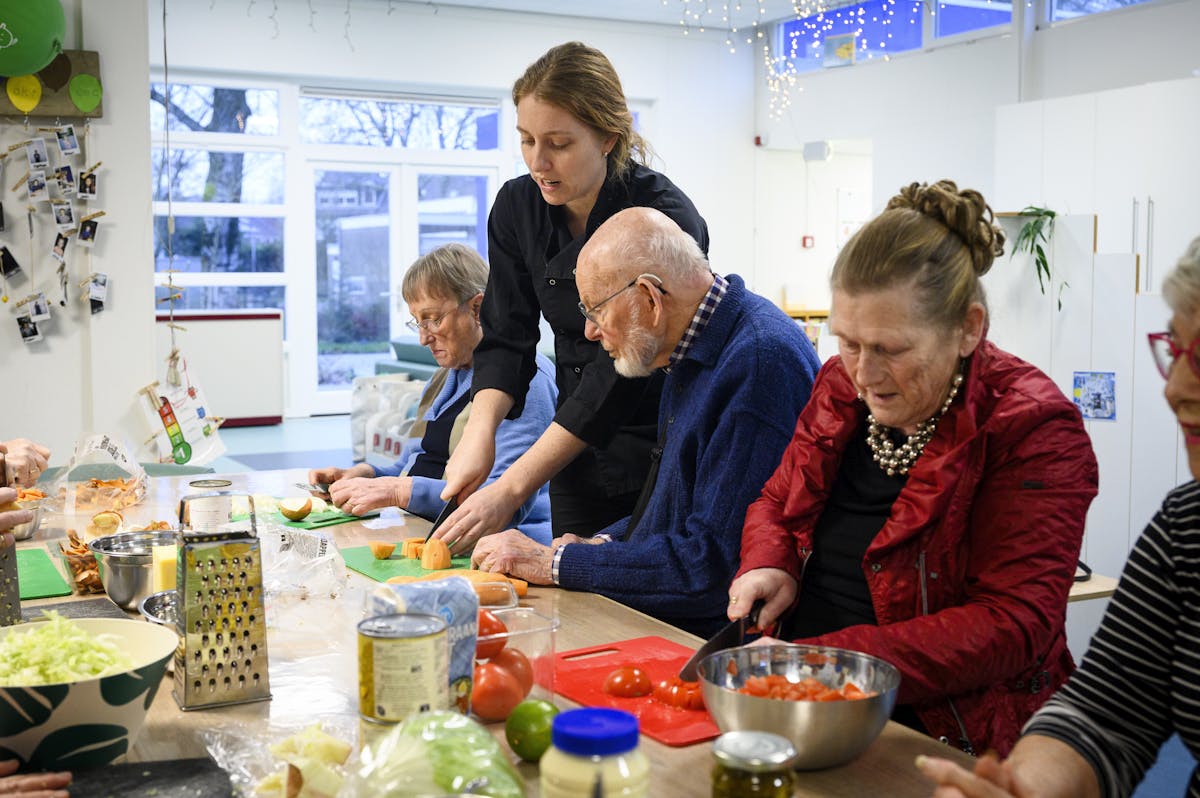 Op woensdag 7 maart was het weer gezellig druk bij 'Samen Koken, Samen Eten'. Onder de 15 deelnemers waren weer veel nieuwe gezichten, waarvan veel alleen kwamen. Om stipt 17.00 uur gingen we van start. Iedereen droeg zijn steentje bij: van het snijden van uien tot het maken van het toetje of het dekken van de tafel. Het begon al snel lekker te ruiken in de keuken. De gesprekken en verhalen gingen even vanzelf als de taakverdeling :)