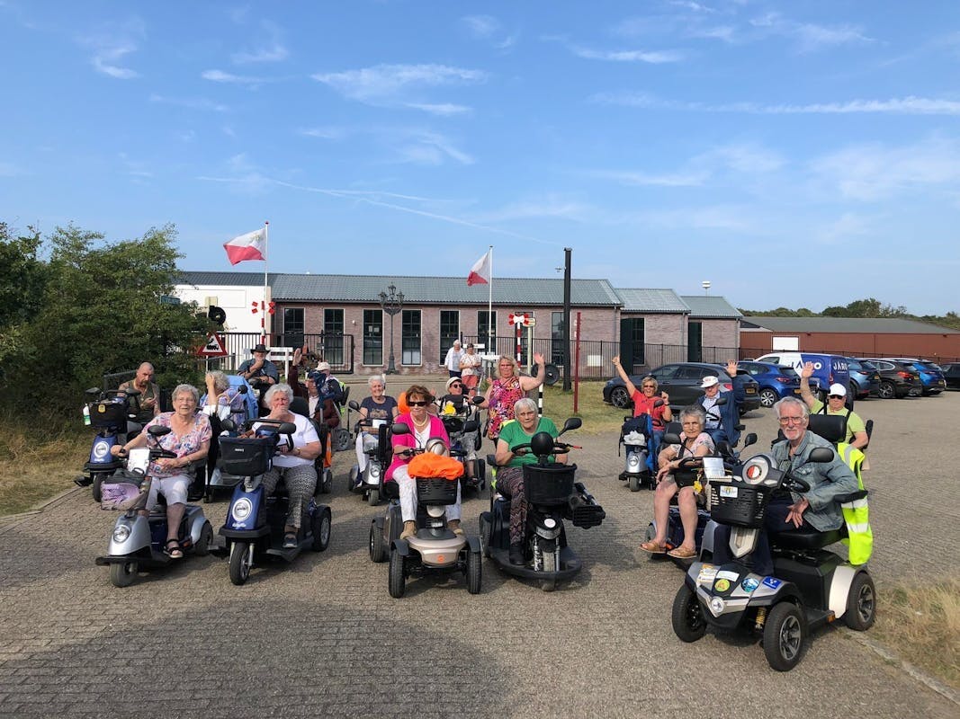 Al vroeg verzamelden de scootjes bij de Bethlehemkerk, waar een oldtimer bus en een vrachtwagen stonden te wachten om de mensen en scootmobielen te vervoeren naar Ouddorp.
