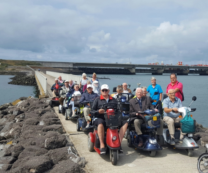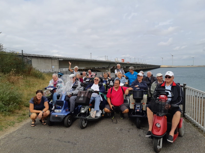 Het grote klapstuk van het jaar met Scootmobielclub De Vrijbuiters naar Neeltje Jans! Opgetogen en enthousiast stonden er 14 scootmobielers klaar voor een lange busreis naar Neeltje Jans.