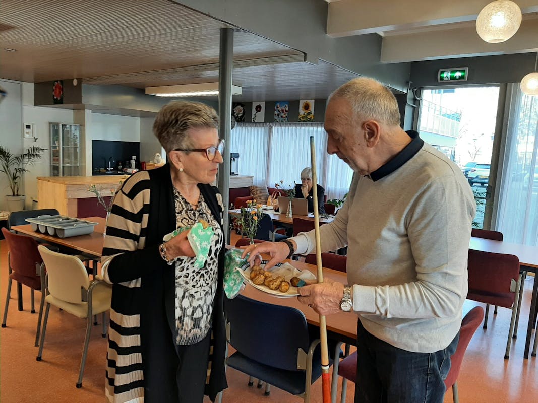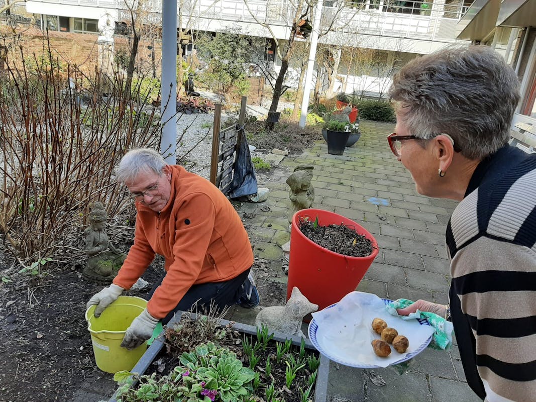 Natuurlijk kreeg iedereen een bordje en werd ook Jan onze tuinman niet vergeten. Hij is onze prachtige tuin alweer aan het klaarmaken voor het voorjaar. 🥰