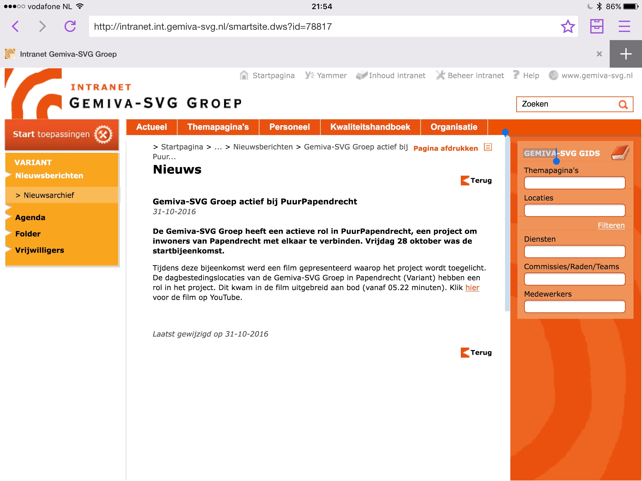 Het bijgevoegde bericht staat op intranet van onze stichting. Dus alle medewerkers en andere belangstellenden kunnen lezen hoe Variant actief is binnen PuurPapendrecht!!!!