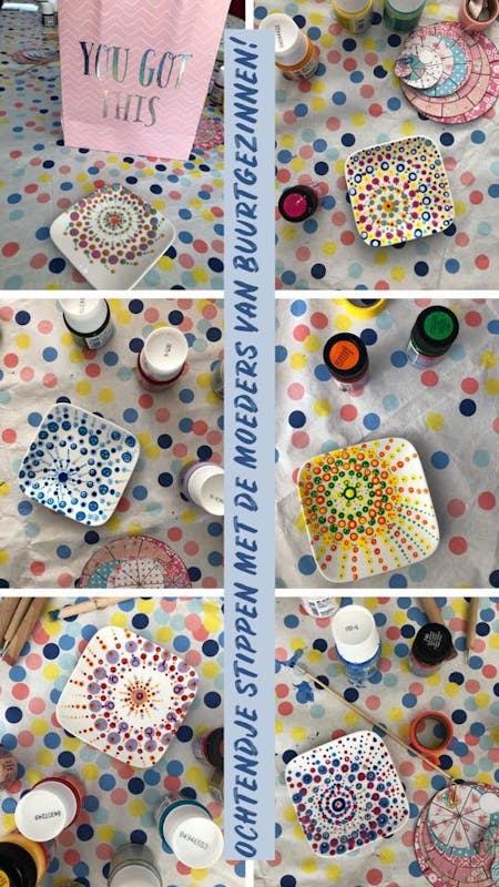 half april was het zover! Een aantal moeders van buurtgezinnen uit Dordrecht en Papendrecht hadden zich opgegeven voor onze stipworkshop! Best spannend als je niemand kent! Er ontstonden mooie kunstwerken! Even een ontspannen moment in de drukte van alle dag!!