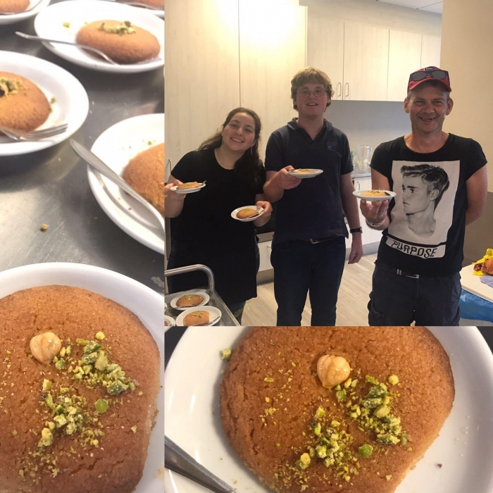 Dinsdag hadden wij een heerlijke snack op variant Albert schweitzerstraat! Tijdens het Suikerfeest heeft stagiaire Gamze samen met Bjorn , Erik en vrijwilligster Trudy gezorgd voor een Turkse zoetigheid; Sekerpare!