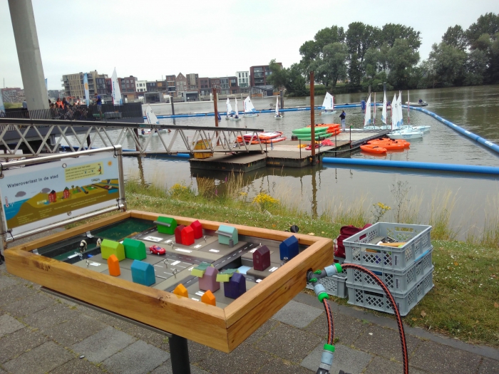 Op de Markt staat een knutseltent met workshops en demonstraties op het gebied van duurzaamheid. Zo maakt de 'watertafel' altijd veel indruk op kinderen. We simuleren een heftige regenbui en kijken wat er dan met de afvoer van het water gebeurt in verschillende typen tuinen. Bezoekers zien meteen het effect op een tuin die helemaal uit tegels bestaat en op een tuin met veel groen. Meer groen in de tuin verkleint niet alleen de kans op wateroverlast in straten en huizen, maar de bloemen zorgen ook nog eens voor voedsel en nestgelegenheid voor vogels, bijen, vlinders en andere insecten.