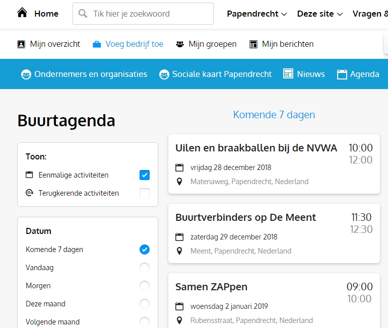 In de agenda van PuurPapendrecht.nl staan héél veel activiteiten. Tja,.. dat kunnen we niet voorkomen, want alle gebruikers plaatsen héél veel berichten. ;-) Of er zijn veel activiteiten die bijna elke week op de agenda staan.
