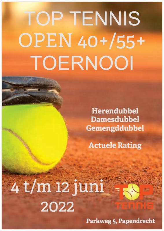 Van 4 t/m 12 juni 2022 organiseert TOP Tennis weer het gezellige TOP Open 40+/55+Toernooi