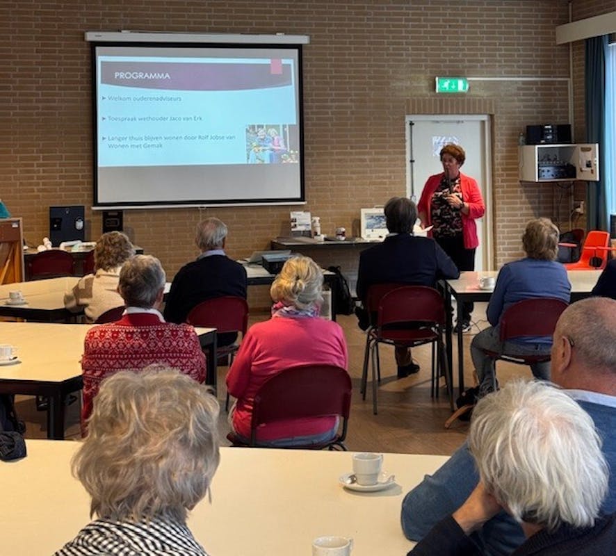 Tijdens de bijeenkomst werd uitleg gegeven over wat je zelf kunt doen om je woning comfortabeler en veiliger te maken. Senioren konden zich ook aanmelden voor de woonscan, een persoonlijke en praktische check van de woning.