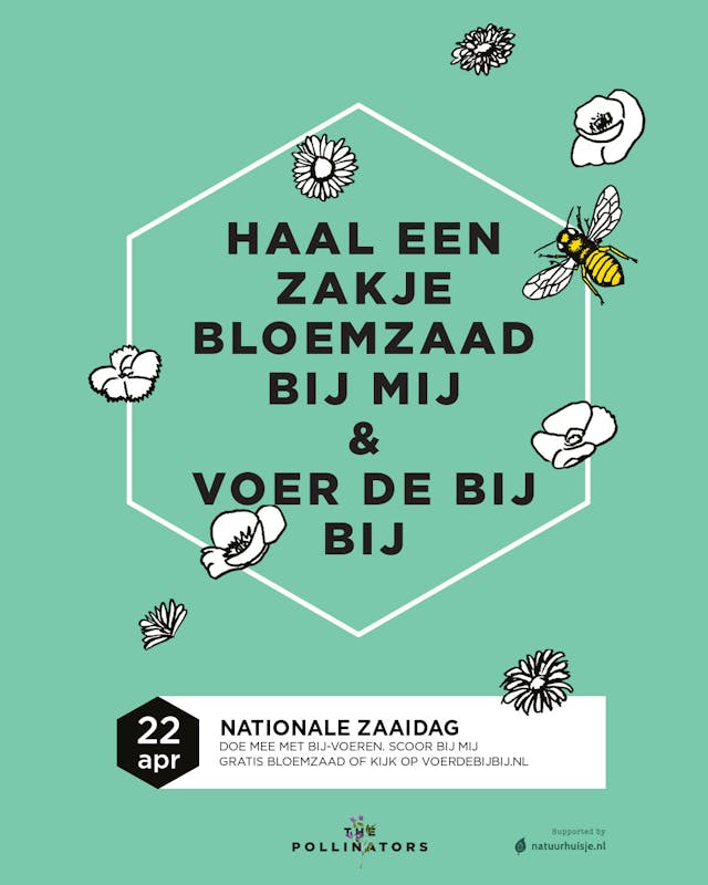 Bestuivende soorten zoals bijen en vlinders hebben niet genoeg te eten en daarom openen The Pollinators dit jaar voor de vijfde maal de Voedselbanken voor Bijen. Iedereen kan daar gratis bloemzaad ophalen. Op 22 april - Nationale Zaaidag – zaait heel Nederland in tuinen, op balkons en in de openbare ruimte. De meer dan 15 verschillende soorten bloemen die daaruit voortkomen zijn een welkome versnapering voor hongerige bijen.