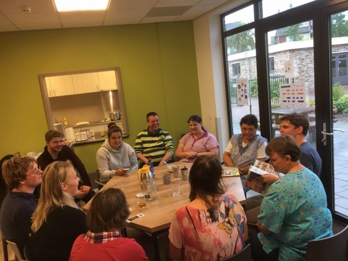 Tijdens de pauze op de Albert Schweitzerstraat met een hele groep het vragenspel "de kletspot" gedaan