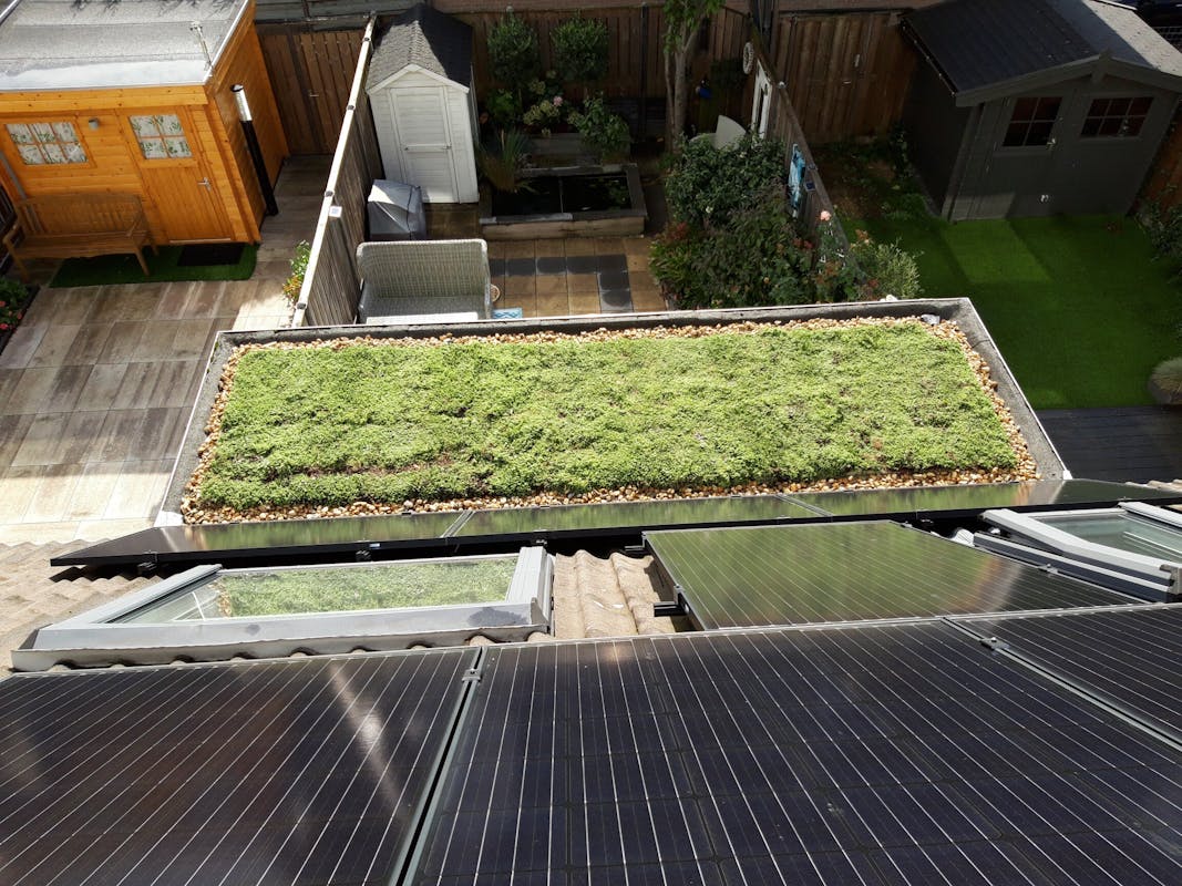 Twintig bewoners hebben inmiddels opdracht gegeven tot de aanleg van een groendak n.a.v. de groendakactie. Zo ook deze familie in de Haagbeukhof (zie foto). Overweegt u ook een groendak? Kijk hier voor meer informatie over het zelf aanleggen van een groendak en/of maak gebruik van de subsidie van Waterschap Rivierenland.