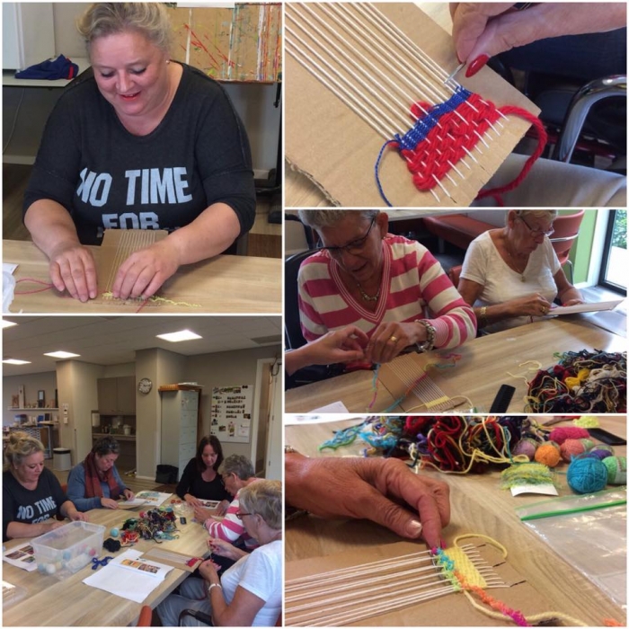 De dames van Variant Perspectief hebben vanmorgen het weven ontdekt! "Het is weer eens iets anders hè", aldus Wil.