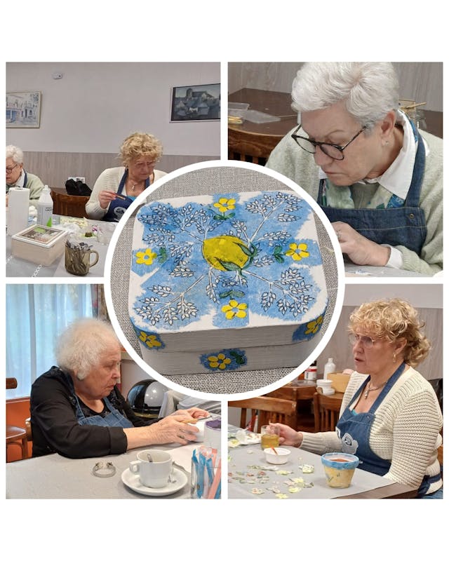 Creatieve club op maandagmiddag. Inloop vanaf 13.30 uur met koffie/thee, de cursus begint om 14.00 uur. Cursusleidster mevrouw Ellen de Visch-Eibergen leert met veel plezier de verschillende technieken aan de cursisten. Er zijn nog enkele plaatsen vrij voor geïnteresseerden.