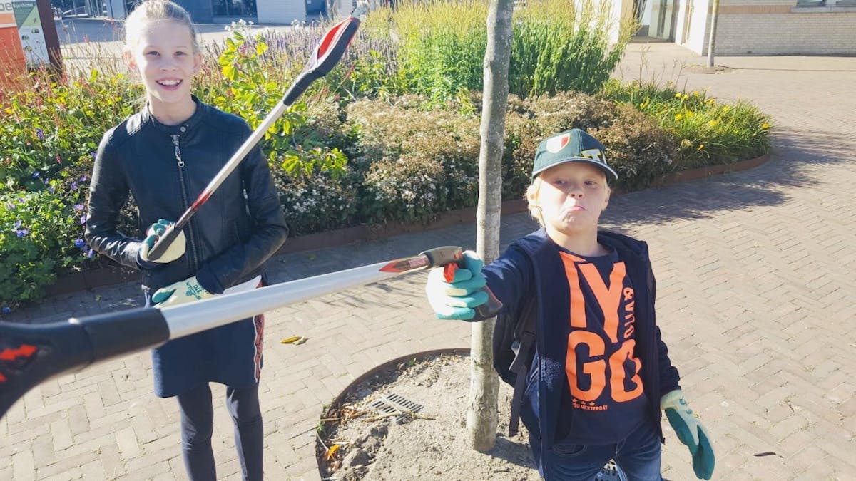 Wat hebben ze een leuke zonnige ochtend gehad, deze twee enthousiaste tieners! Eva Markesteijn en Tijn Pellikaan zijn de ZAPpers van ons Dokter Rietveldplein die het plein en de wijk rondom schoonhouden!