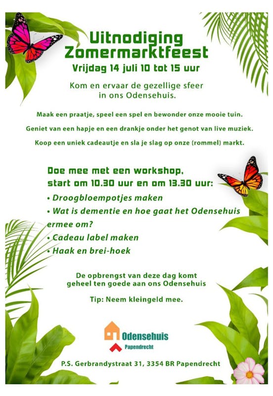 Zomermarktfeest in het Odensehuis op vrijdag 14 juli van 10.00 tot 15.00 uur