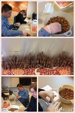 Die leuke canvas tas is gemaakt op de groep Van Katoen in Papendrecht en de illustratie erop gemaakt door iemand bij het Koetshuis. De kaars wordt gemaakt bij de kaarsenmakerij...