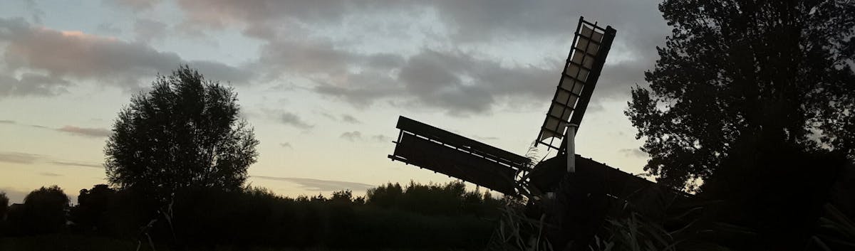 Zondag 18/02/2024 De weidemolen heeft voor het eerst in 2024 l gemalen,4 volle zeilen uit het zuiden, later de dag is de wind uitgeruimd naar het Westnoordwesten flinke regen