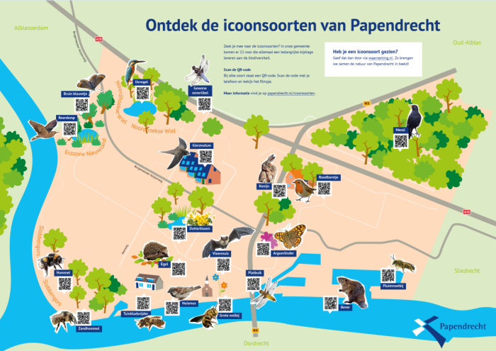 In de gemeente Papendrecht komen 22 icoonsoorten voor. Dit zijn dieren en planten die ons een beeld geven hoe het gaat met de biodiversiteit. Als een icoonsoort aanwezig is, wil dat zeggen dat het goed gaat met de natuurwaarde in onze gemeente.