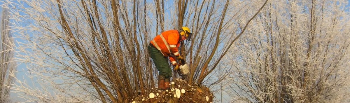 Vrijwilligerswerkgroep die wilgen voor het waterschap en voor particulieren in de Alblasserwaard knotten om deze in het landschap te behouden.